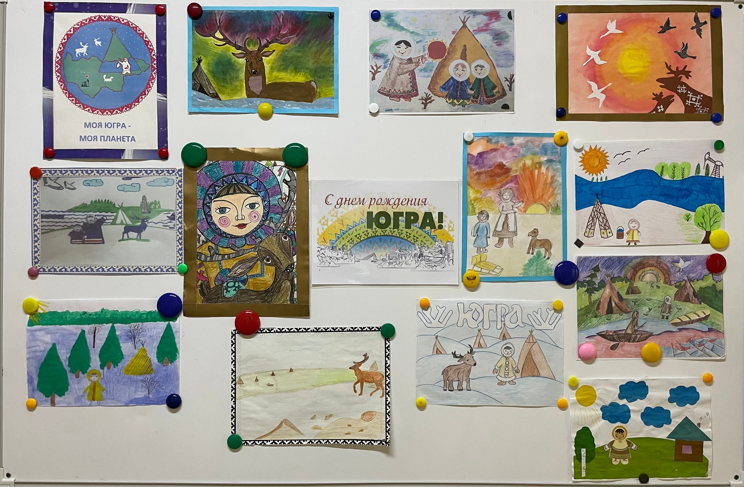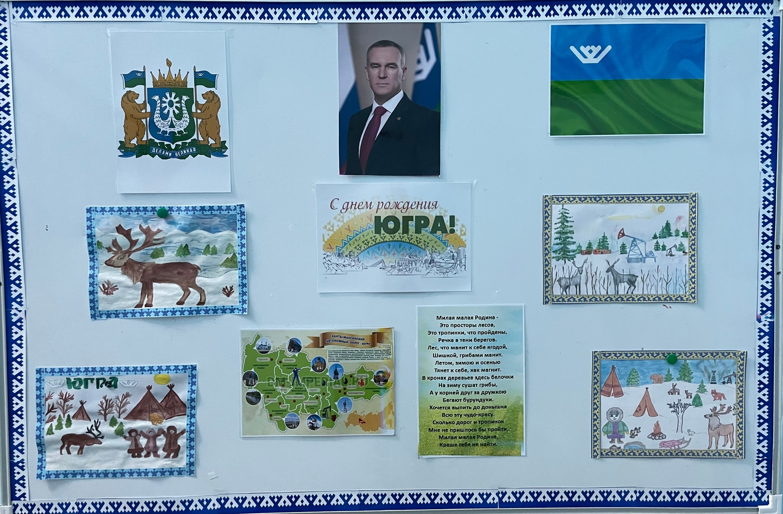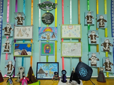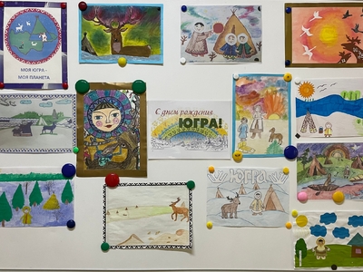 Воспитатели вместе с детьми оформили тематическую выставку «С Днем рождения, Югра!».